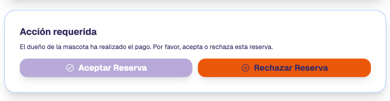- Reserva pendiente: ya pagaste, pero el cuidador todavía no respondió. En este estado, no se comparten datos de contacto entre las partes.