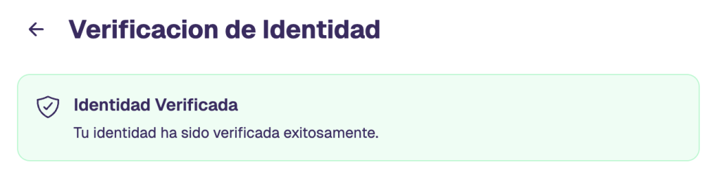 Si volvés a la sección «Verificación de Identidad», vas a ver un banner verde que dice «Identidad Verificada – Tu identidad ha sido verificada exitosamente». Además, tu perfil público ahora muestra el badge verde «Verificado» junto a tu nombre, visible para todos los usuarios de la plataforma.