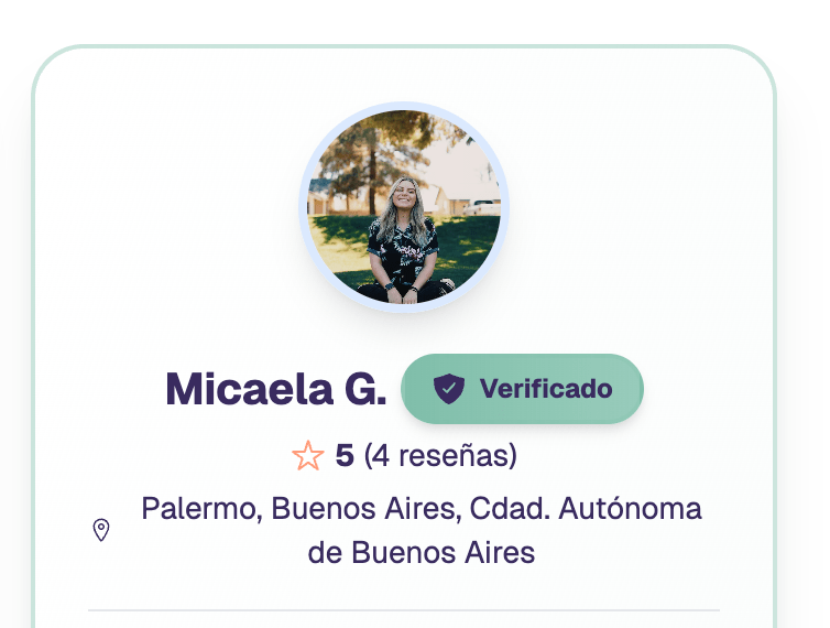 Cuando buscás cuidadores en Wufis, vas a ver que algunos perfiles tienen un badge verde que dice «Verificado» junto al nombre. Esto significa que esa persona pasó por nuestro proceso de verificación y confirmamos su identidad.